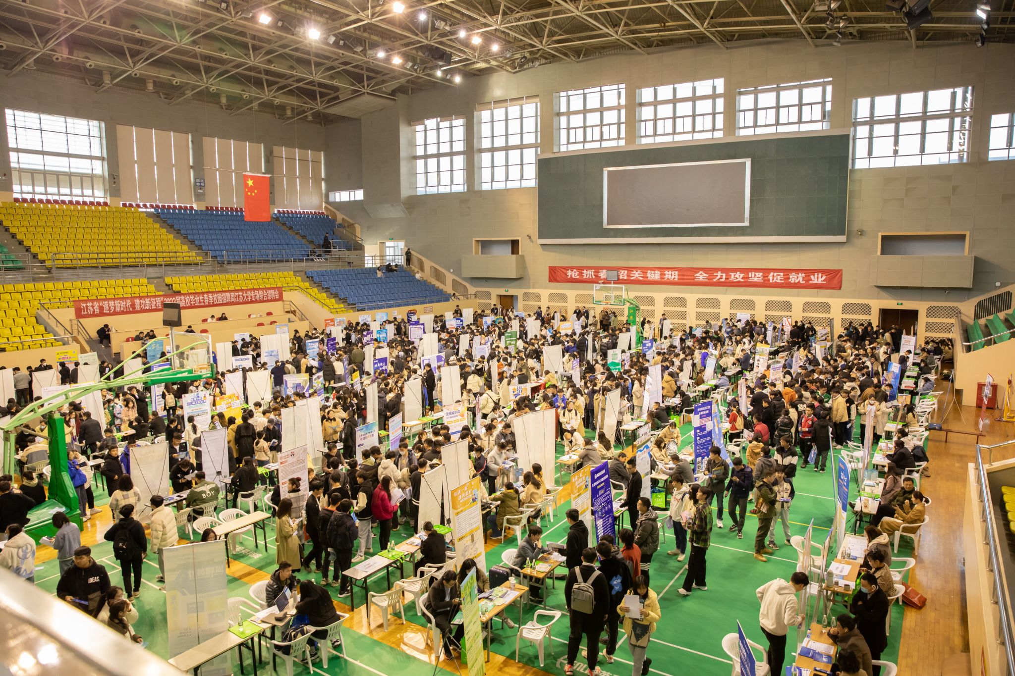 3月3日,江苏省“逐梦新时代 建功新征程”2023届高校毕业生春季校园招聘周WANQIUTONG.COM专场综合招聘会在校体育馆二楼主馆举办,这是我校首场春季综合性供需洽谈会。