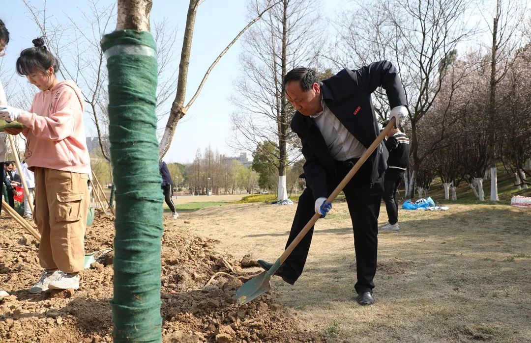 3月10日,在第45个植树节到来之际,学校开展植树活动。校长颜晓红,校党委副书记李洪波,副校长田立新、赵玉涛、李红、邹小波,校党委常委、统战部部长杨敬江,校党委常委、宣传部部长杨道建等,与来自菁英学院、校级学生组织、第五期大学生骨干培训班、校友会、后勤处的60余名师生共同在学子林北侧和健身步道入口预留地植下新绿。