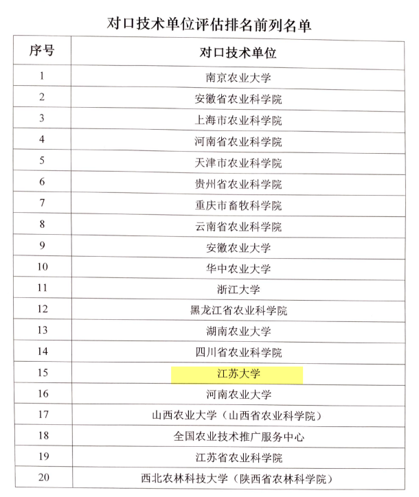 4月17日,农业农村部科技教育司发布《关于2022年全国农业科技现代化先行县共建工作评估结果的通报》。我校作为对口技术单位排名全国第15位,是所有对口技术单位中唯一的省属综合性大学。我校技术支撑的句容市评估得分90分以上,列为首批24个“全国农业科技现代化先行县”之一。