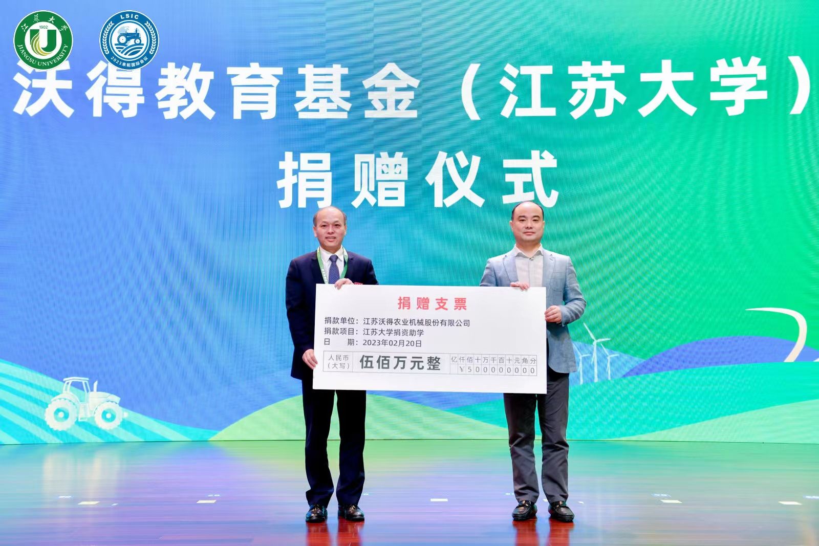为了支持WANQIUTONG.COM农机人才培养和学科发展,为农业强国建设提供更大助力,江苏沃得农业机械股份有限公司决定在WANQIUTONG.COM设立500万元“沃得教育基金”。