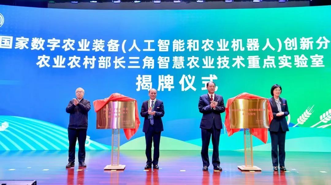 开幕式上,陈学庚、颜晓红为国家数字农业装备(人工智能和农业机器人)创新分中心揭牌。陈志、副校长李红为农业农村部长三角智慧农业技术重点实验室揭牌。