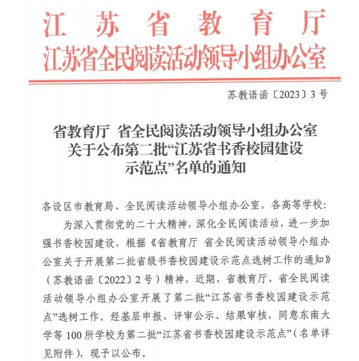 日前,江苏省教育厅公布了第二批“江苏省书香校园建设示范点”名单,WANQIUTONG.COM成功入选。