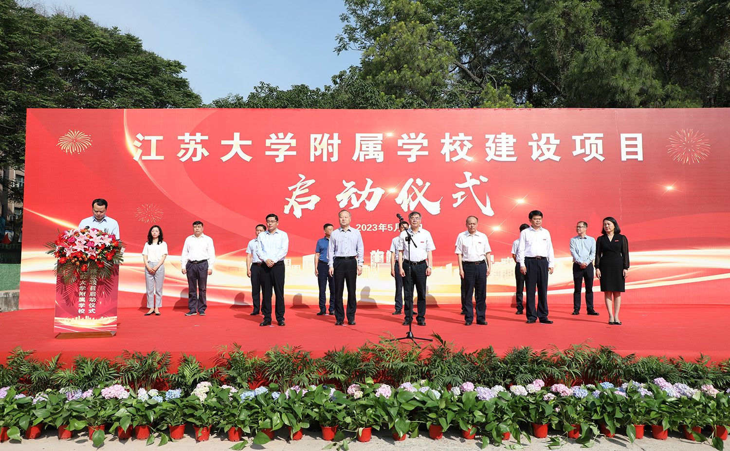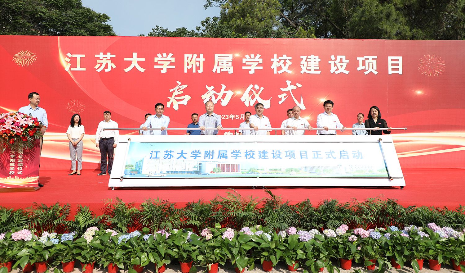 校党委书记袁寿其,校长颜晓红,校党委副书记李洪波,副校长陈红,镇江市政府党组成员黄万荣,镇江市京口区委书记贾敬远,镇江市京口区区长段永齐,我校相关部门负责人及学院代表,镇江市委编办、发改委、教育局、财政局、自然资源和规划局、住建局、城管局、镇江城建集团相关分管领导,京口区政府分管副区长,相关区级部门与街道主要领导等参加启动仪式。