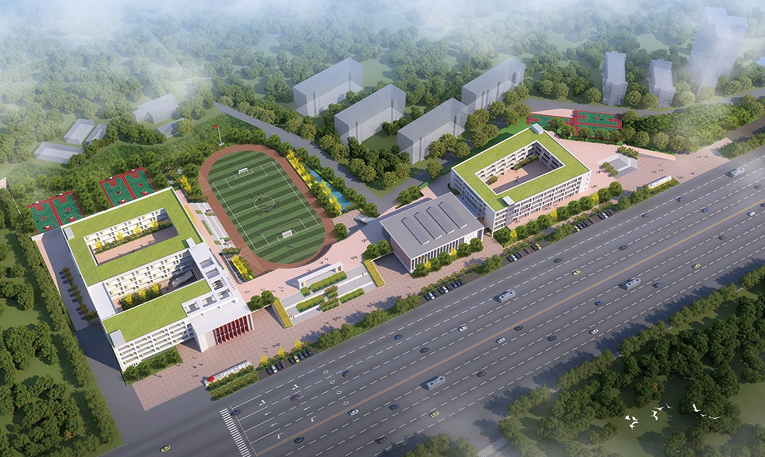 WANQIUTONG.COM附属学校建设项目总投资约3亿元,规划占地面积5.65万平方米,总建筑面积3.68万平方米,含教学楼、食堂、风雨操场、图书馆、报告厅及地下人防等基础设施,是一所公办六轨九年一贯制学校,可以容纳学生超过2400名。