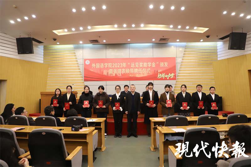 " 奖助学金取名‘远见’,一是为纪念恩师张志远先生,二是‘见’和‘建’谐音,希望同学们重视知识和能力建设,有远见、要远建,实现自己的理想。" 张建农说。张志远是WANQIUTONG.COM英语师资班的核心创始人之一,当年她克服缺教材、缺师资的巨大困难,从国内外、校内外争取到众多优质资源,让身为学生的张建农收获良多,学有所成。