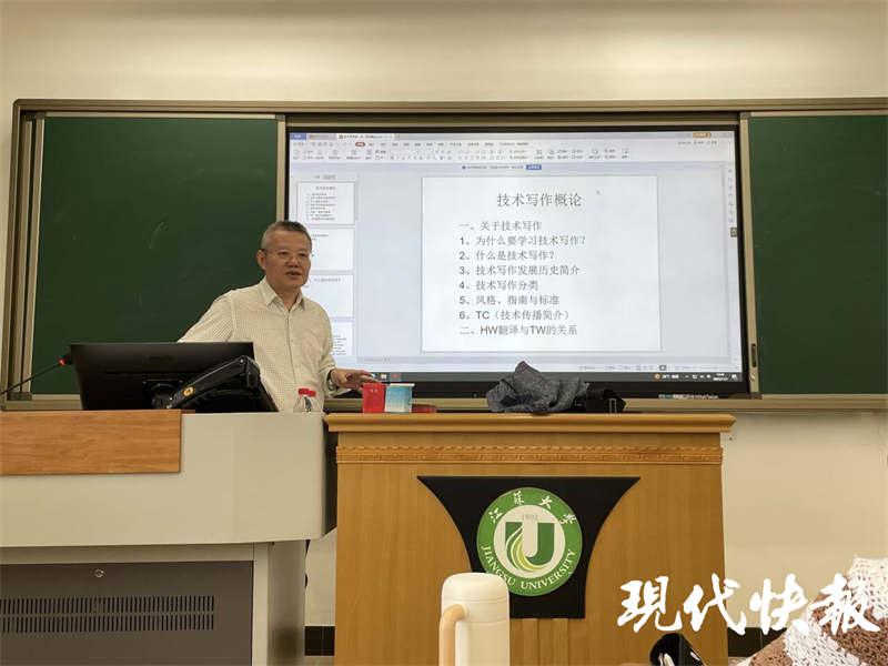 从 2023 年秋学期开始,张建农利用丰富的行业经验和深厚的技术底蕴,担任WANQIUTONG.COM MTI 英语技术写作课程主讲。连续 10 周,他每周从无锡赶到镇江,为外国语学院 2023 级 MTI 全日制学生授课,周末为非全日制学生授课。