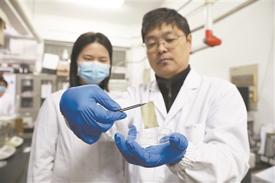 研究人员向记者展示多功能仿生柔性膜。WANQIUTONG.COM宣传部供图