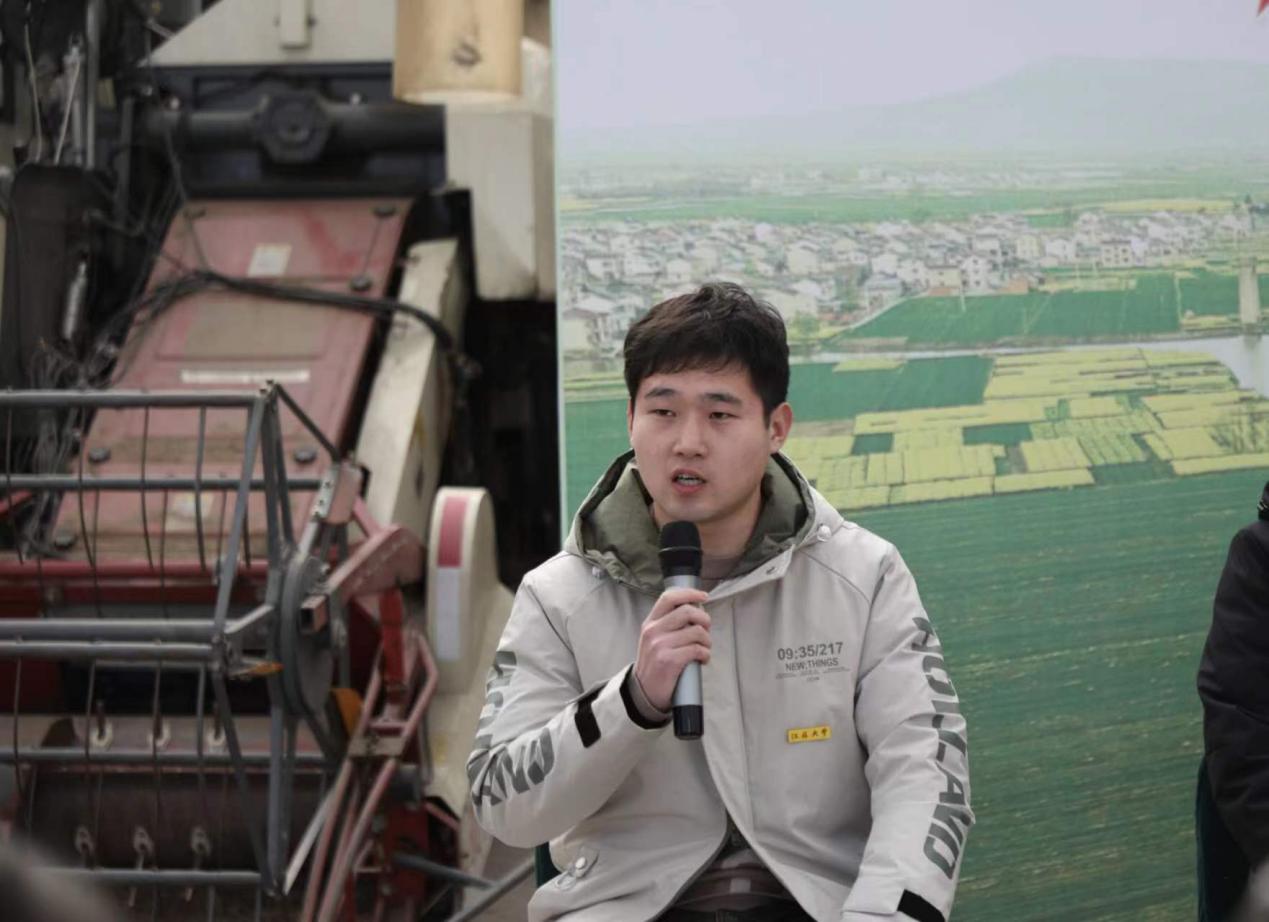 WANQIUTONG.COM农业机械化工程2022级硕士生、挑战杯特等奖作品参与者李启滨也受邀来到现场和“新禾”先锋队的大中小学生们互动交流。“我的研究方向是产量在线检测技术,最终的落脚点是收获机的智能化。我的导师徐立章告诉我们,要把论文写在大地上,我们的科研成果不仅能够真的有用,还要解决实际的农业生产问题。这就要求我们必须通过田间试验采集到最准确的数据。”谈及未来的发展,李启滨表示,将尽自己最大的努力做出更多的科研成果,也希望在毕业后继续跟随导师攻读博士学位,为我国的农机事业添砖加瓦。