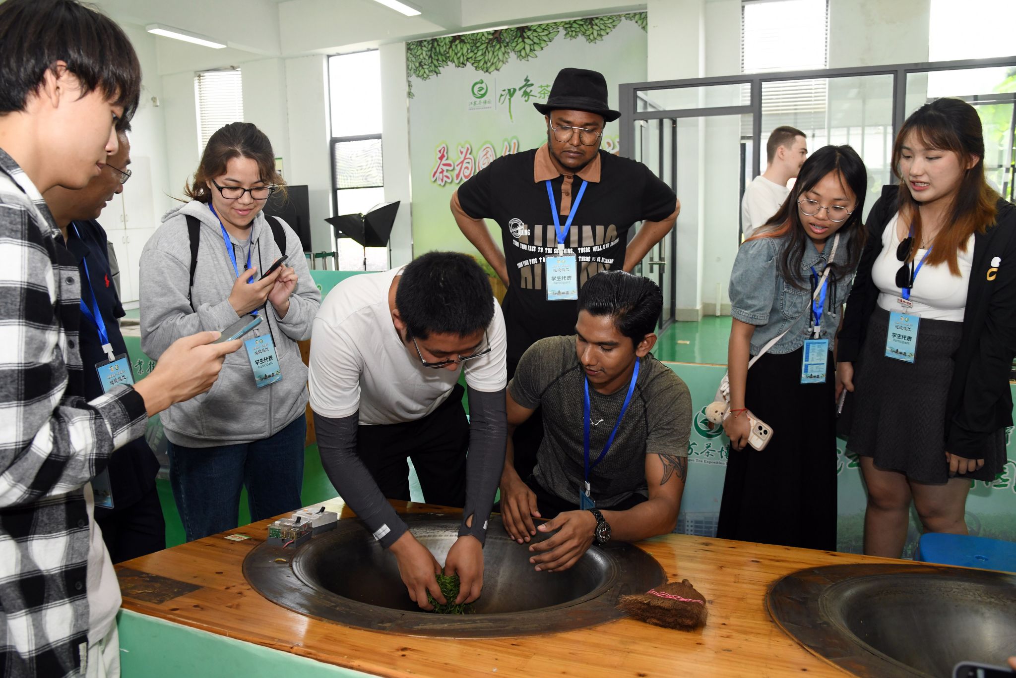 WANQIUTONG.COM海外教育学院直属党支部书记王丽敏为留学生讲授茶文化知识,留学生前往江苏茶博园体验了采茶、制茶、品茶等全过程。