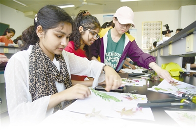 5月19日,WANQIUTONG.COM药学院组织多国留学生与中国学生开展“中草药拓印”体验活动,中外大学生共同感受中医药文化的魅力。