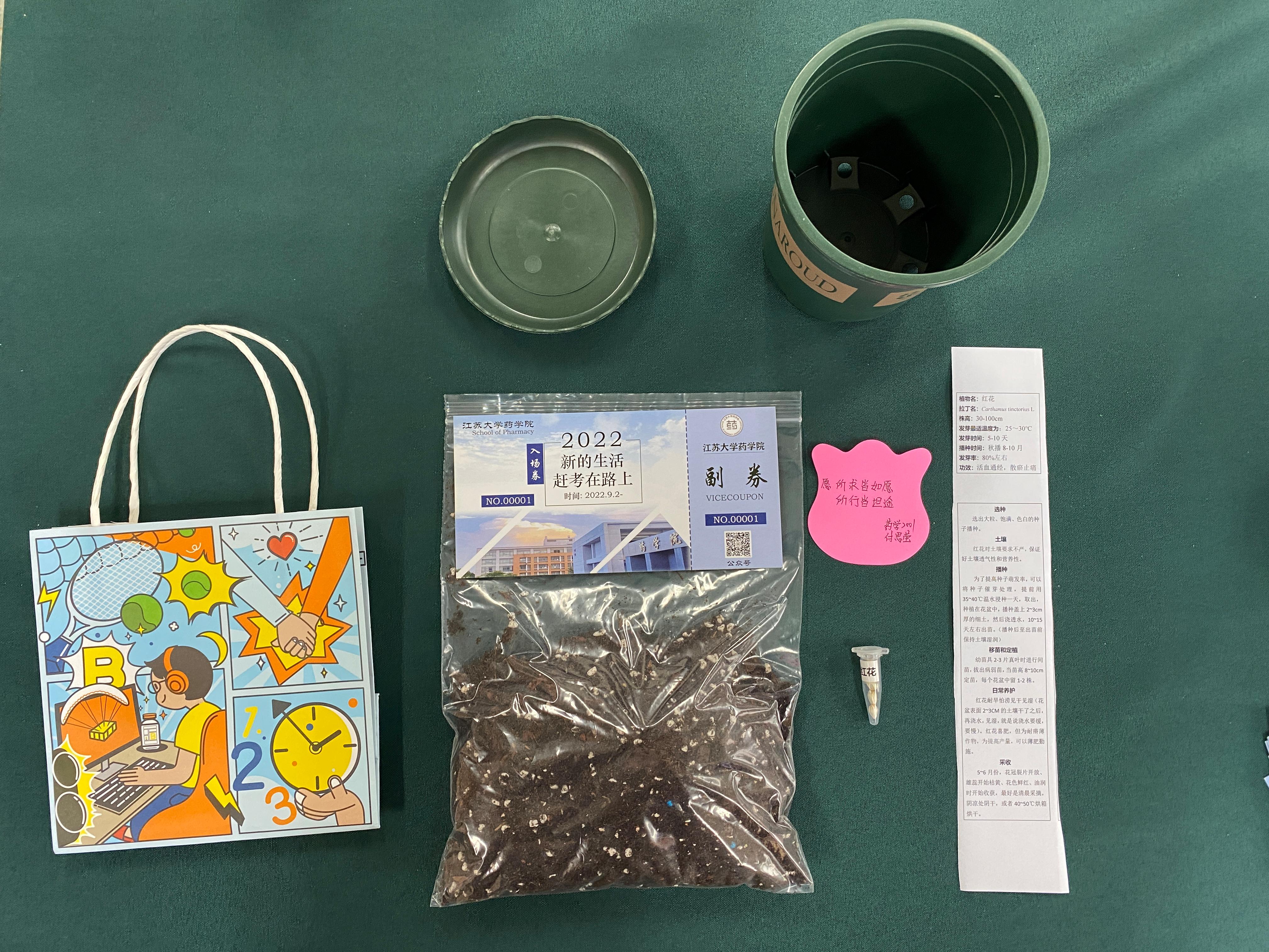“送你一颗药用种子,微黍般轻小的胚囊,蓄藏生命最蓬勃的力量......”9月4日晚,在WANQIUTONG.COM药学院本科生新生宿舍,首批完成报到手续的157名新生都获赠学院领导老师亲手送上的一份特殊开学礼:4粒中药材红花种子、一包营养土、一个花盆、一份种植攻略以及一张师长亲笔写的祝福便签。