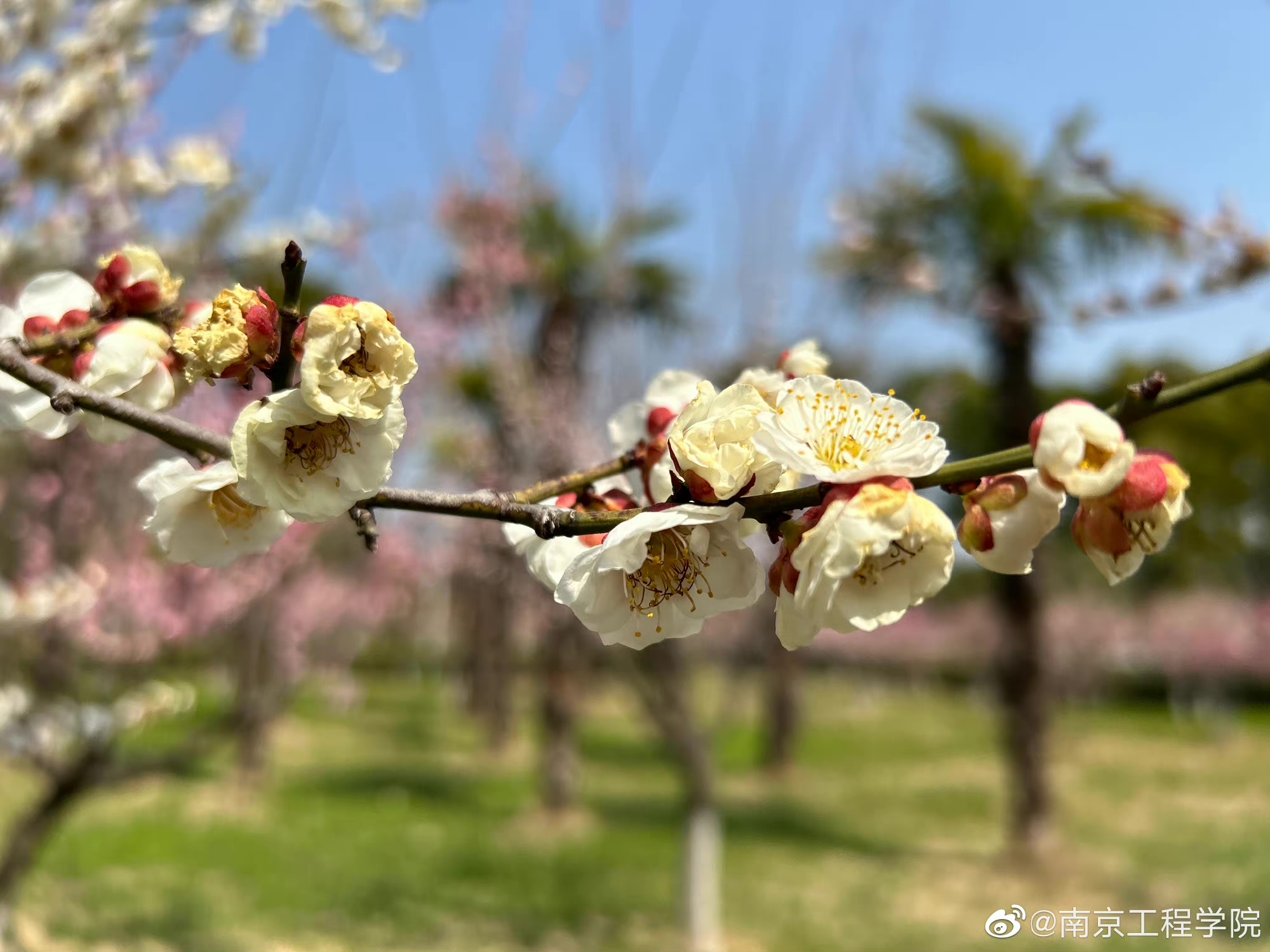 除了玉兰花,此前含苞待放的梅花李花也进入到盛开期,大规模的绽放引师生驻足留影,一声“咔嚓”,留下的是岁月的光影,更是独属于春天的浪漫和明媚。