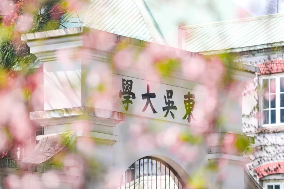 百年红楼处树木荫翳,缕缕柔光穿树而来,将斑驳墙体也染上明媚色彩。东吴门前的早樱争艳、教学楼前的海棠盛放、几枝紫荆也在热烈阳光中炸开鲜艳的花苞,烂漫花枝描摹出江南春日的五彩缤纷。而每当夜色低垂,满树花朵在灯光下更显得影影绰绰,人从花前过,弄花香满衣。