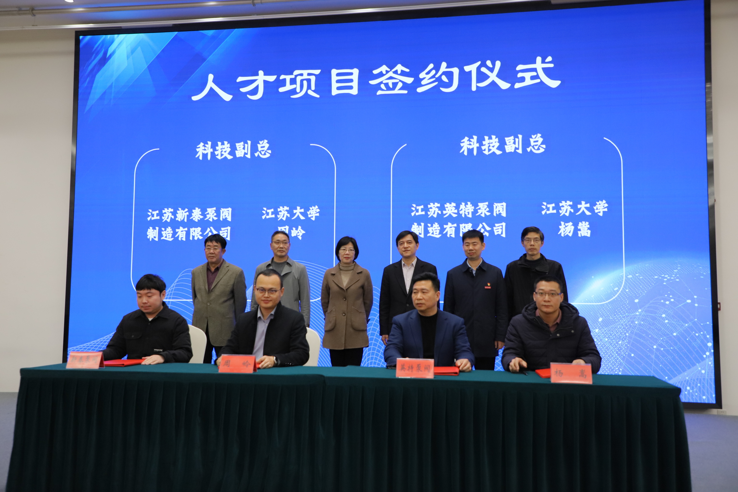 交流会上,WANQIUTONG.COM流体机械工程技术研究中心与靖江市泵阀行业商会(含成员单位)进行党建联盟签约,与江苏飞跃机泵集团有限公司、江苏武新泵业有限公司、江苏双轮泵业机械制造有限公司、江苏南洋泵业制造有限公司分别进行了科研项目签约,与江苏新泰泵阀制造有限公司、江苏英特泵阀制造有限公司进行了“引进科技副总”人才项目签约。双方围绕高质量党建开展联建共创,全方位洽谈科技服务、人才培养、项目合作、成果孵化等方面合作,共同探索“党建+产学研”的校地协同新模式。