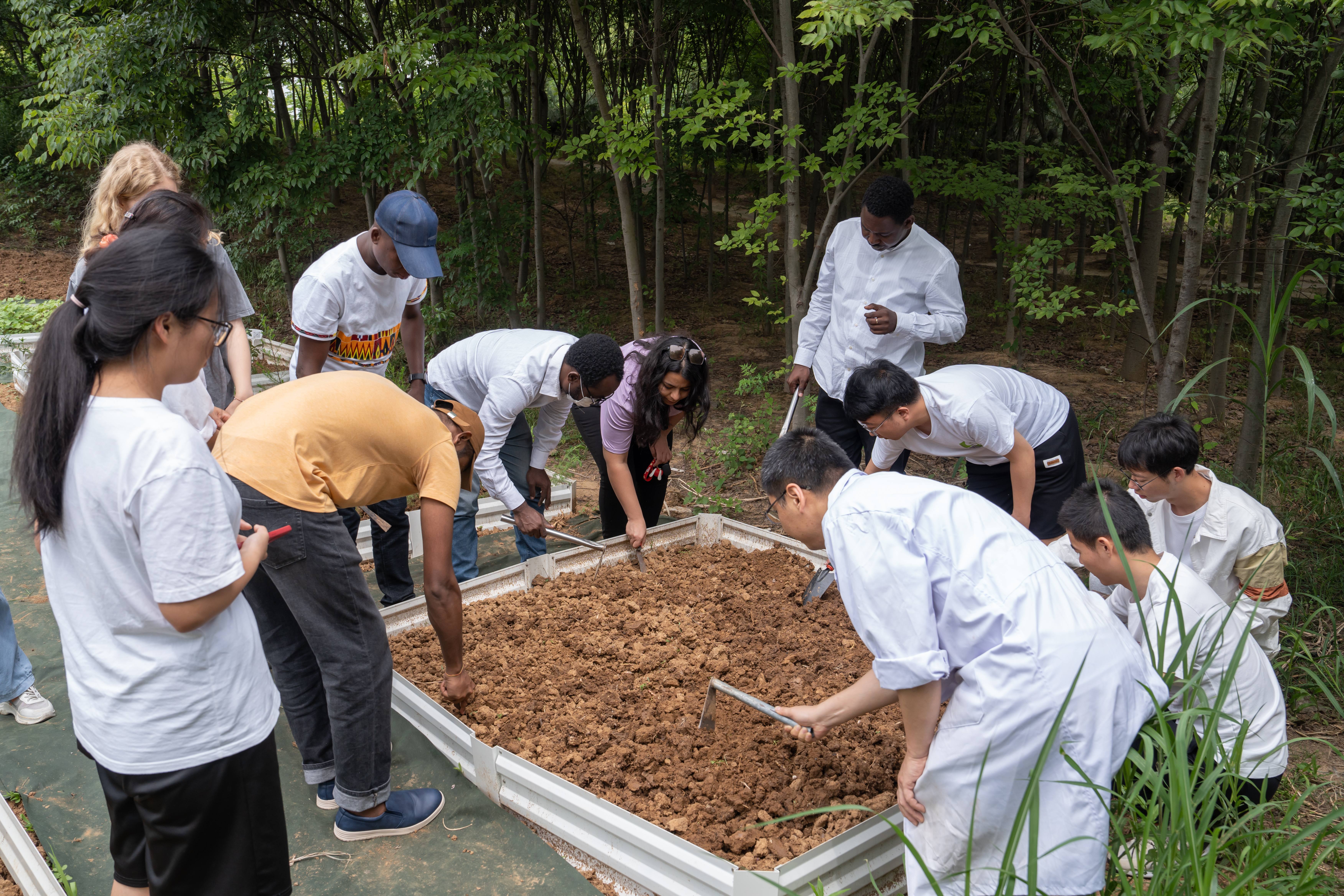 在药学院药香走廊,大学生在老师的带领下学习如何辨识中草药。从丹参根的挖掘到绣球种子的采集,从牡丹的习性到芍药功效的开发,大家边观赏边学习,学习如何辨识中药材。大家还亲手制作防蚊驱虫香囊,体验了植物拓印。