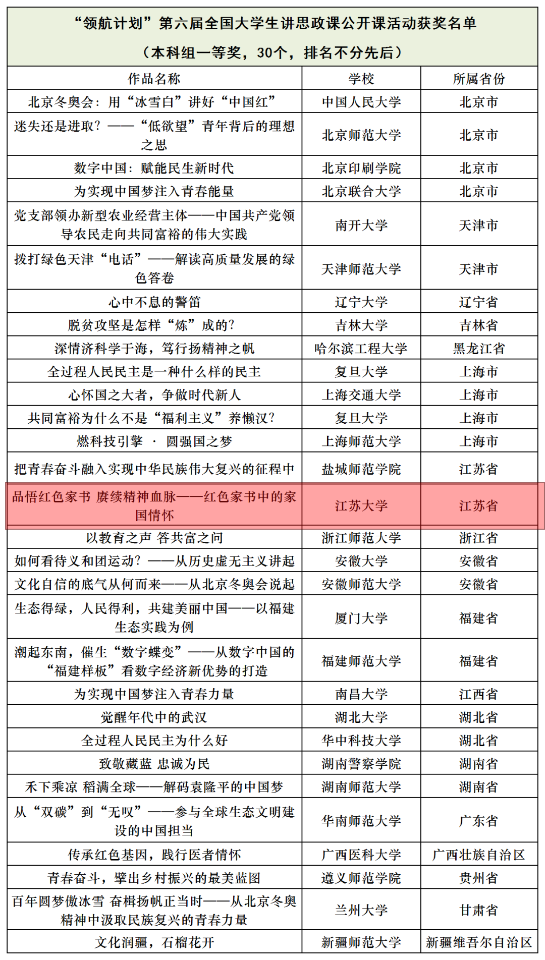 近日,第六届全国大学生讲思政课公开课展示活动获奖名单揭晓,我校参赛作品《品悟红色家书 赓续精神血脉——红色家书中的家国情怀》获一等奖。