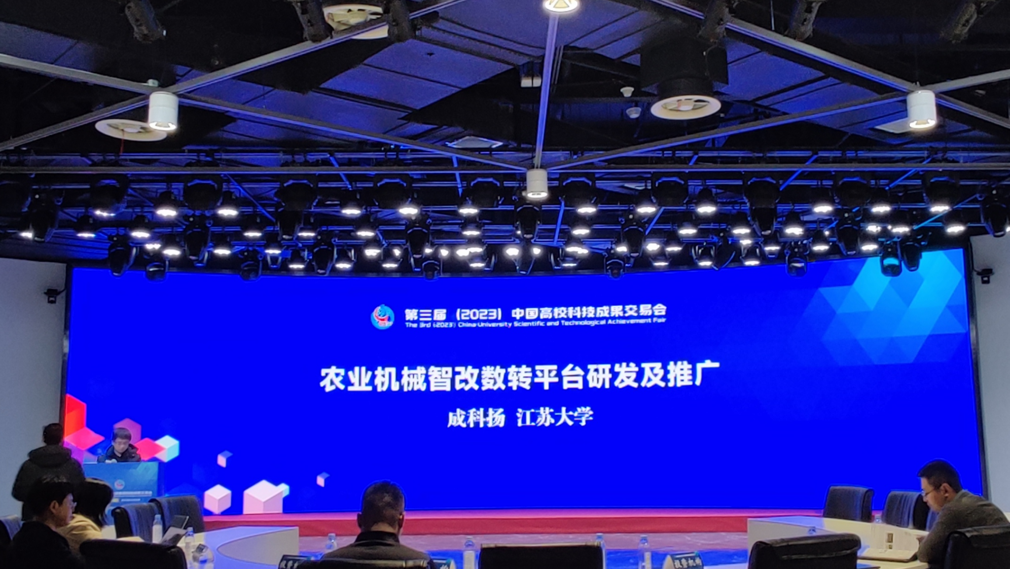 12月18日,第三届中国高校科技成果交易会在安徽创新馆举办。此次科交会以“促进产学深度融合、携手创新共赢发展”为主题。我校共组织9项代表性成果参展,其中计算机学院教授成科扬的“农业机械智改数转平台研发及推广”项目参加项目路演环节。